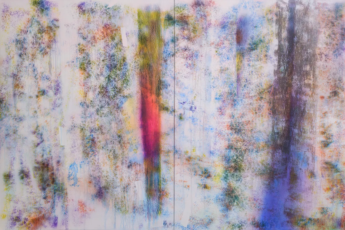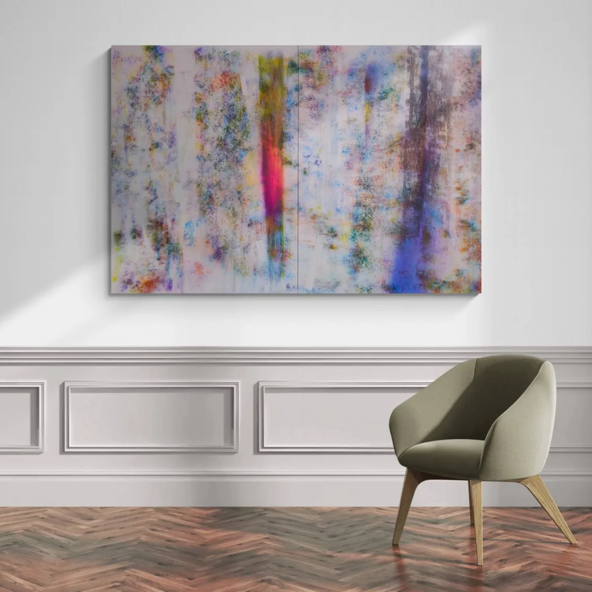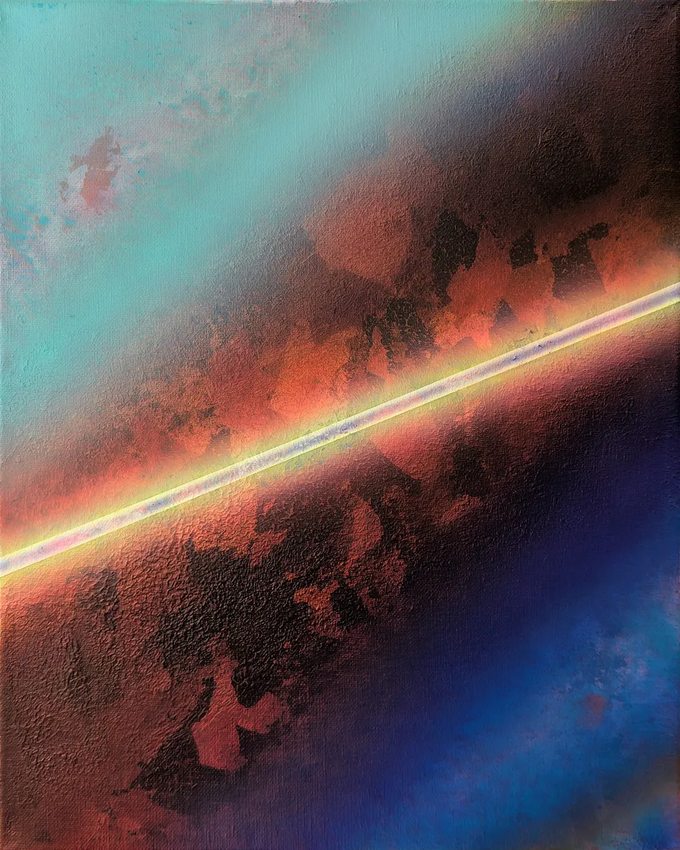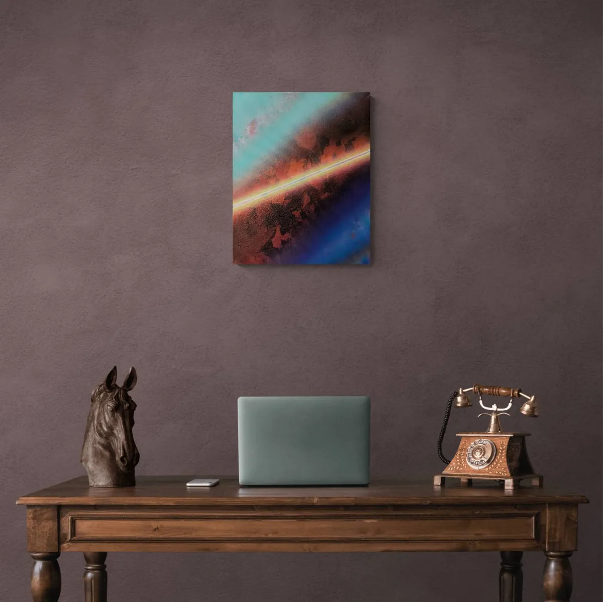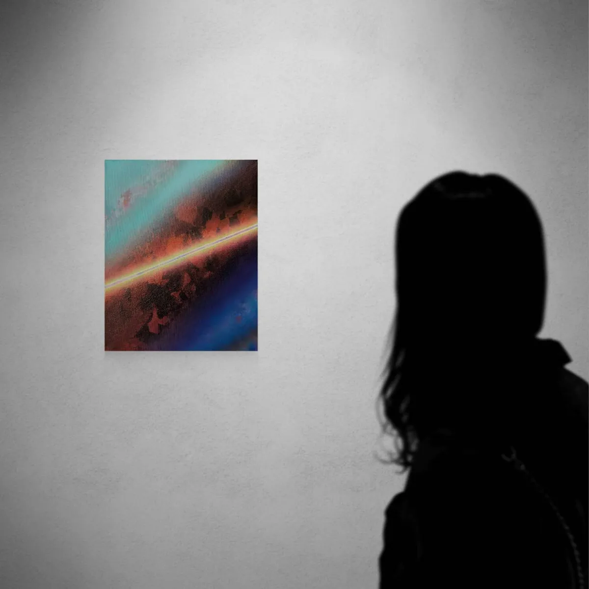 A meaningful landscape inspired by the beautiful sceneries of Fujairah, where the artist made joyful memories which she wished for a long time. It is made using acrylic paints, cotton and soft pastel.