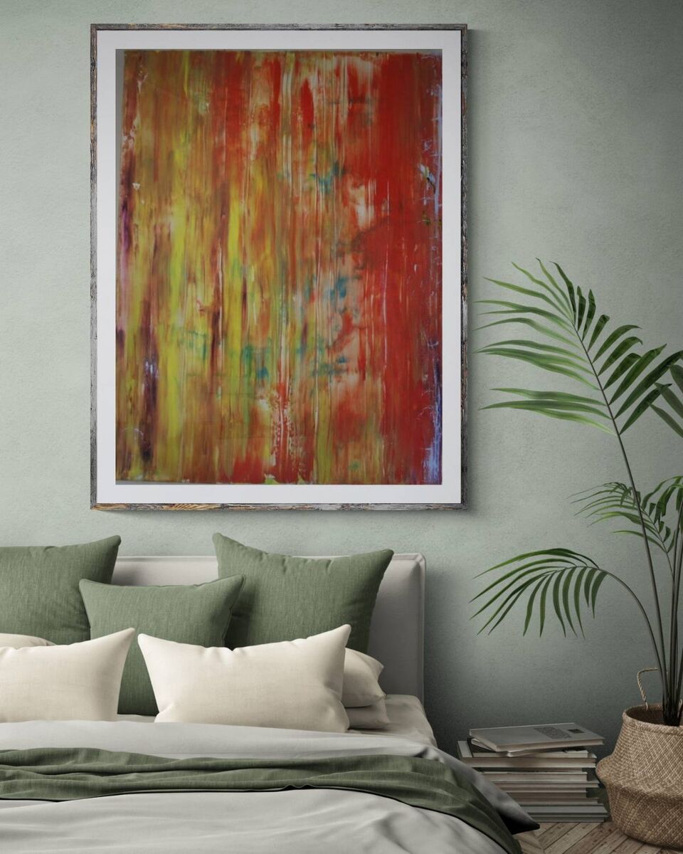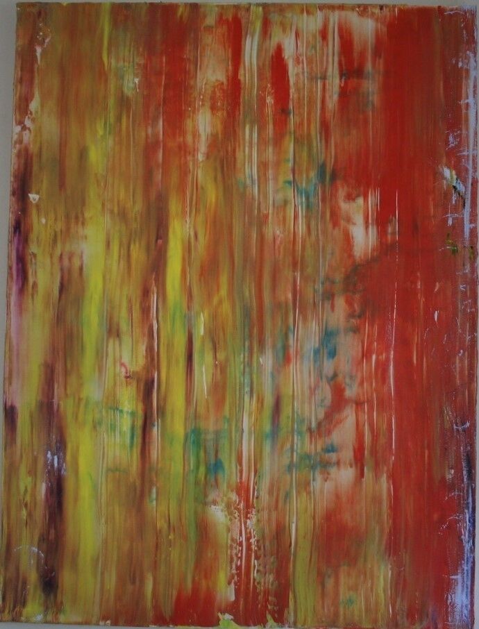 A 3'x 4' acrylic painting on canvas for sale by artist. This piece is heavily textured with modling paste applied with palette knives and drywall tools. Oil pastel accents applied with my fingers. #3 in the Chubby Rain series. Local Los Angeles pickup. Shipping not included